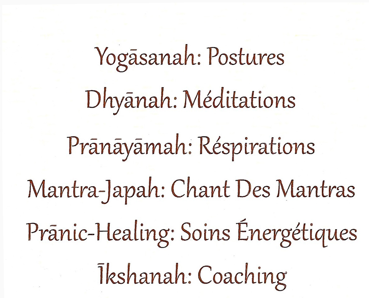 Un cours de Yoga-Intégrale comprend le chant de OM, méditation, technique de respiration, postures, détente…